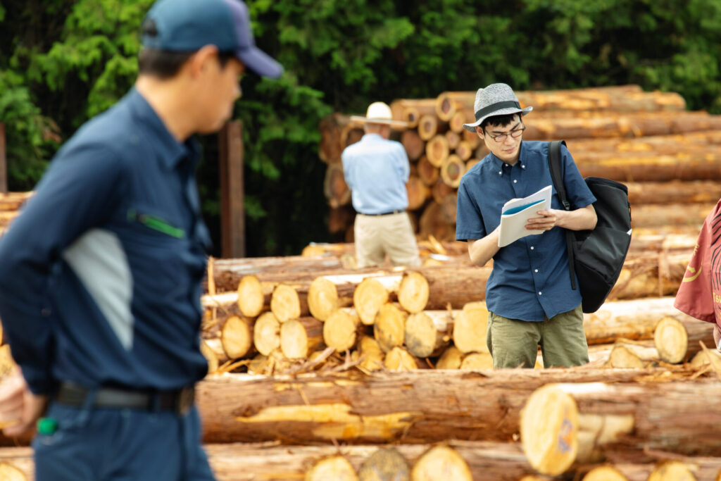浦田さんの研究にとって決定的だったのは、2021年に起きた「ウッドショック」だ。コロナ禍による外国産材の供給不足で、国内の木材価格までもが急騰。ニュースで頻繁に報じられた木材業界の激変を目の当たりにし、「ウッドショックについて研究したい」と考えた。そして選んだ研究対象は、幼い頃から親しんできた原木市場。「あの場所がどうなっているのか、それを知りたい一心であった。戦後日本で独自発展した市場システムの大きな転換点に、浦田さんが対峙しているのだ。